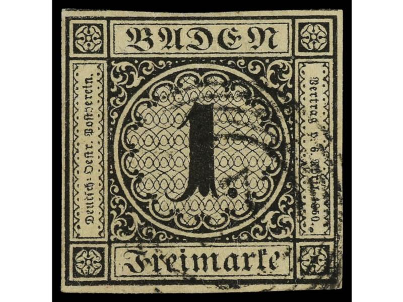 ALEMANIA ANTIGUOS ESTADOS: BADEN. 1851. 1 kr. bistre. MUY BONITO EJEMPLAR. Cert. F. STEGMULLER. Yv.1. (Image1)