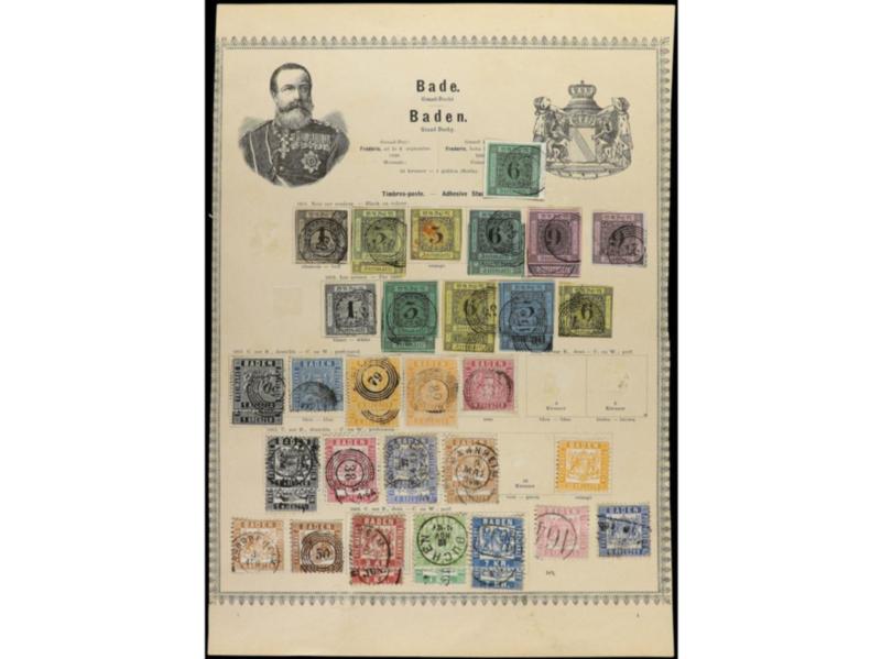 ALEMANIA ANTIGUOS ESTADOS: BADEN. 1851-68. Dos páginas de álbum con sellos usados la mayoría con preciosos matasellos. (Image1)