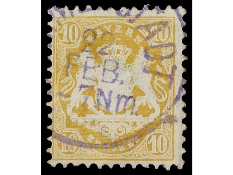 ALEMANIA ANTIGUOS ESTADOS: BAVIERA. 1875. 10 k. amarillo. MUY BONITO EJEMPLAR. (Mi. 29Xb). Dictamen. Firma Stegmuller. Yv.28. (Image1)