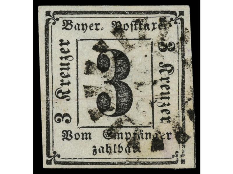 ALEMANIA ANTIGUOS ESTADOS: BAVIERA. 1862. 3 kr. negro. MUY BONITO. Firma Sem. Yv.T-1. (Image1)