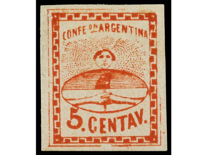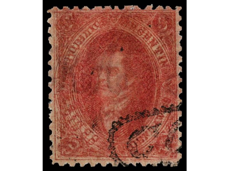 ARGENTINA. 1867. 5 ctvos. lila. DOBLE IMPRESIÓN total y muy visible. Yv.11. (Image1)