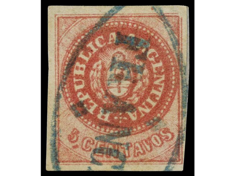 ARGENTINA. 1862-64. 5 ctvos. rosa sin acento. Mat. ovalado FRANCA. PRECIOSO. Yv.5d. (Image1)