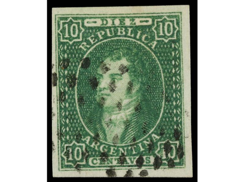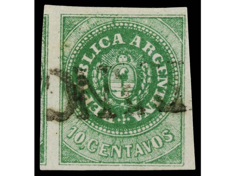ARGENTINA. 1864. 10 ctvos. verde. Grandes márgenes. MAGNÍFICO. Yv.9. (Image1)
