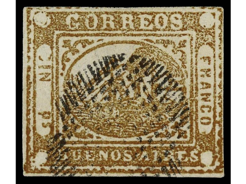 ARGENTINA. 1858. BUENOS AIRES. 4 reales castaño. PRECIOSO. Cert. R. KNEITSCHEL. Yv.5. (Image1)