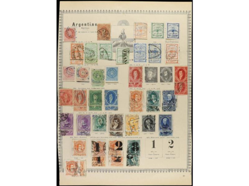 ARGENTINA. 1858-85. Cuatro páginas de álbum con sellos usados también sellos de servicio y enteros postales recortados. Interesante página con sellos de Buenos Aires y Córdoba y Corrientes. Dos certificados. (Image1)