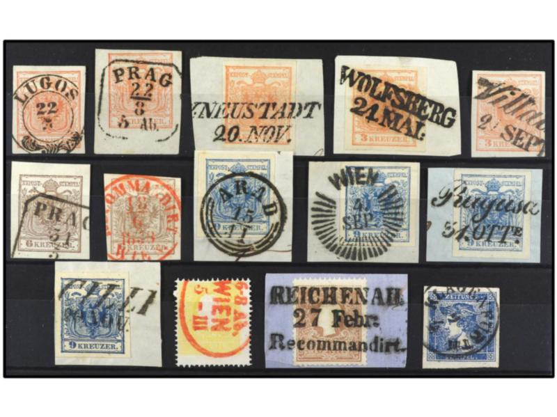 AUSTRIA. 1850-59. SELECCIÓN de 14 sellos en usado con matasellos de belleza excepcional, todos con Dictámenes de Ferchenbauer, R. Strakosch, U. Steiner y G. Babor. (Image1)