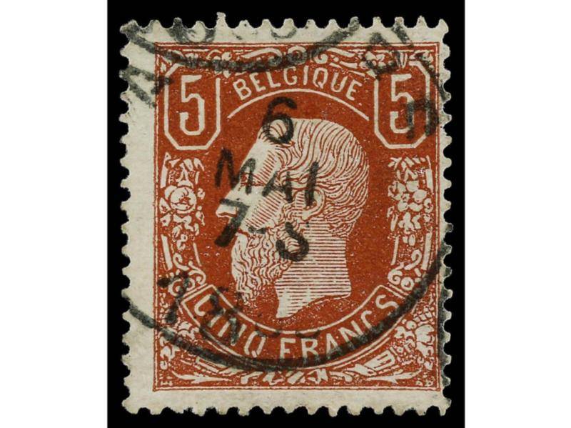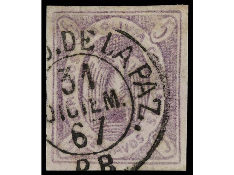 BOLIVIA. 1867-68. 5 ctvos. lila. Mat. fechador de LA PAZ. MAGNÍFICO. Yv.3. (Image1)