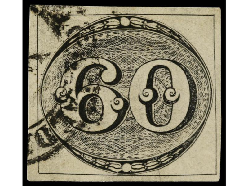 BRASIL. 1843. 60 reis negro. MAGNÍFICO EJEMPLAR. Yv.2. (Image1)