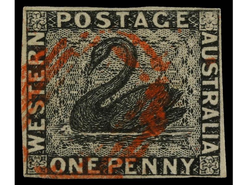 AUSTRALIA. 1854-57. AUSTRALIA OCCIDENTAL. 1 p. negro. PRECIOSO. Yv.1. (Image1)