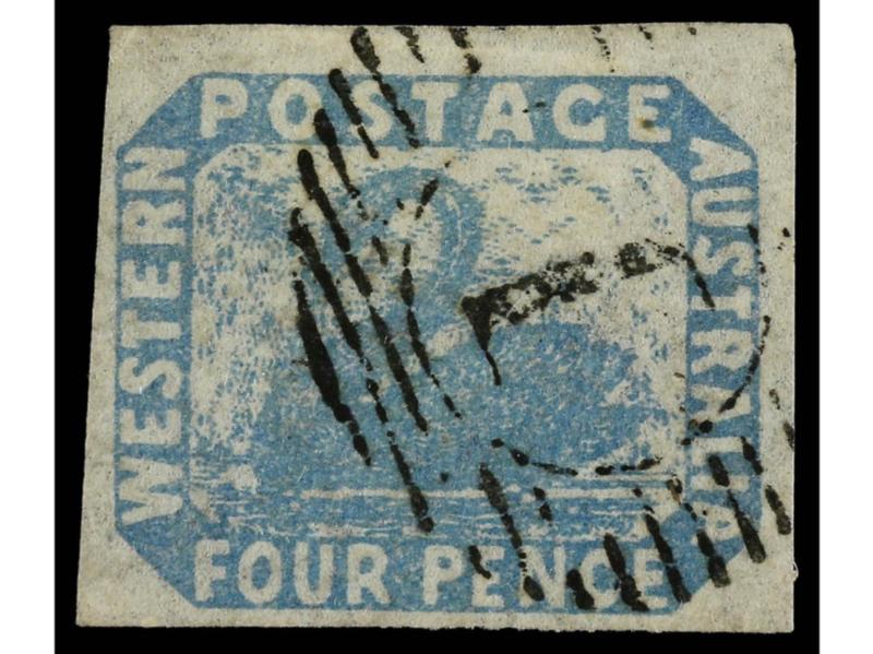 AUSTRALIA. 1854-57. AUSTRALIA OCCIDENTAL. 4 p. azul. PRECIOSO. Yv.3. (Image1)