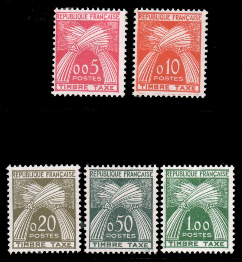 FRANCE, 1960, 5c-1fr POSTAGE DUE SET NH, #J93-J97, fresh and very fine, cat. $59.75 (Image)