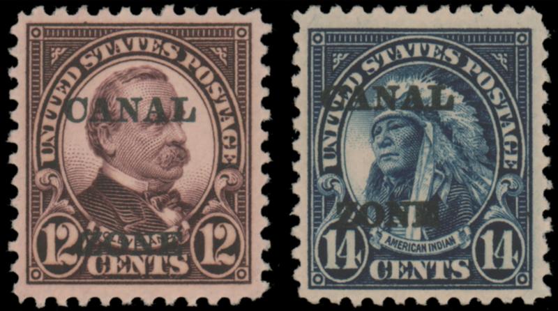 CANAL ZONE, 1924-25, 12c BROWN VIOLET, 14c DARK BLUE MINT XF, #76-77, exceptionally well-centered, h.r., extremely fine, cat. $60.00 (Image)