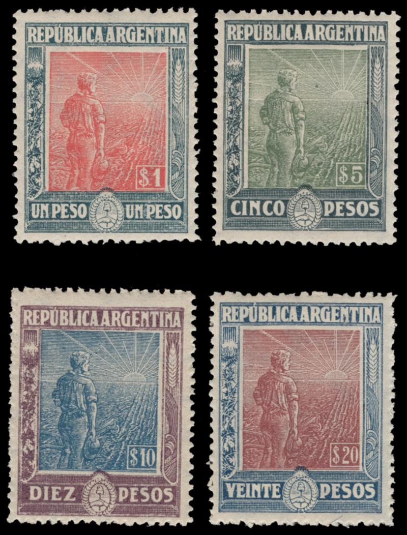 ARGENTINA, 1912-13, 1p-20p AGRICULTURE MINT NEVER HINGED, #201-04, pristine set, very fine, cat. $314,00 as hinged set (Image)