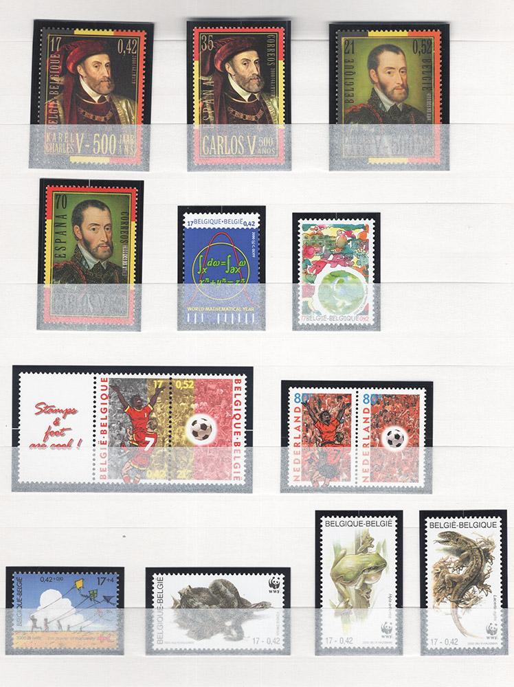 BELGIUM 2000-2001 NH ISSUES ON STOCKPAGES, all diff. incl. some joint issues with other countries, very fine, cat. $150.00 (Image)