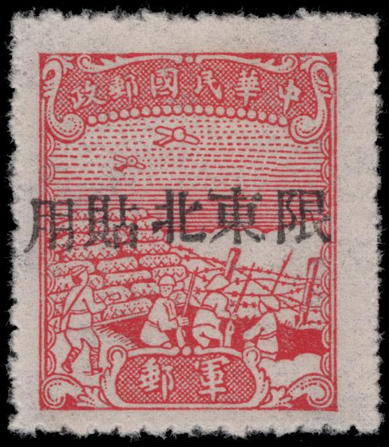 CHINA NORTHEASTERN PROVINCES, 1947, ROSE MILITARY STAMP MINT, #M3, without gum as issued, fine-very fine, cat. $62.50 (Image)
