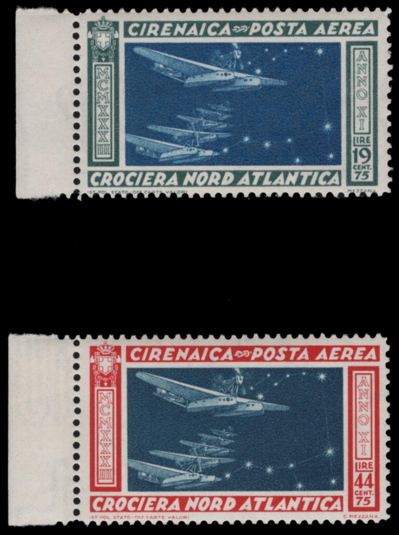 CYRENAICA, 1933 NORTH ATLANTIC CROSSNING AIR POST NH, #C18-C19, fresh, very fine, cat. $70.00 (Image)