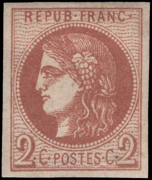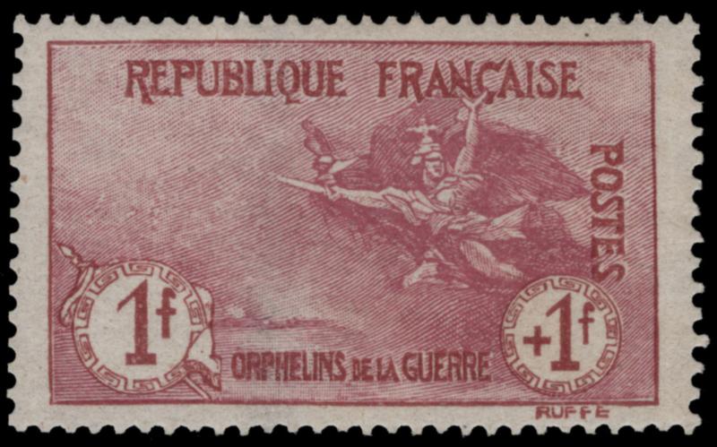 FRANCE, 1917, 1fr CLARET & MAROON MINT NEVER HINGED, #B9, fresh and well-centered, very fine, cat. $1,100.00, Yvert #154 @ €1,900.00 (Image)