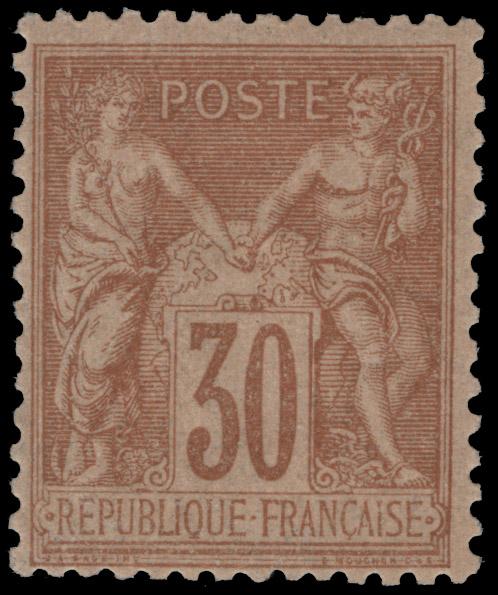 FRANCE, 1881, 30c YELLOW BROWN TYPE II MINT NEVER HINGED, #82. fresh, fine-very fine, cat. $135.00, Yvert #80 @ €195.00 as NH (Image)
