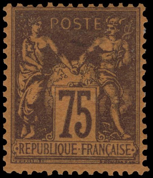 FRANCE, 1890, 75c DEEP VIOLET ON ORANGE TYPE II MINT, #102, fresh and quite well-centered, lightly hinged, fine-very fine, signed Brun, cat. $215.00, Yvert #99 @ €400.00 (Image)