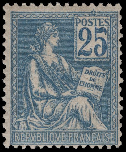 FRANCE, 1900, 25c BLUE NUMERALS PRINTED SEPARATELY NH, #119a, fine-very fine, cat. $340.00, Yvert #114 @ $380.00 (Image)