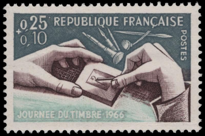 FRANCE, 1966, 25c+10c RED CROSS STAMP DAY - ORANGE COLOR MISSING - MINT NEVER HINGED, #B400var., fresh and very fine, cat. Maury #1477a @ €350.00 (Image)