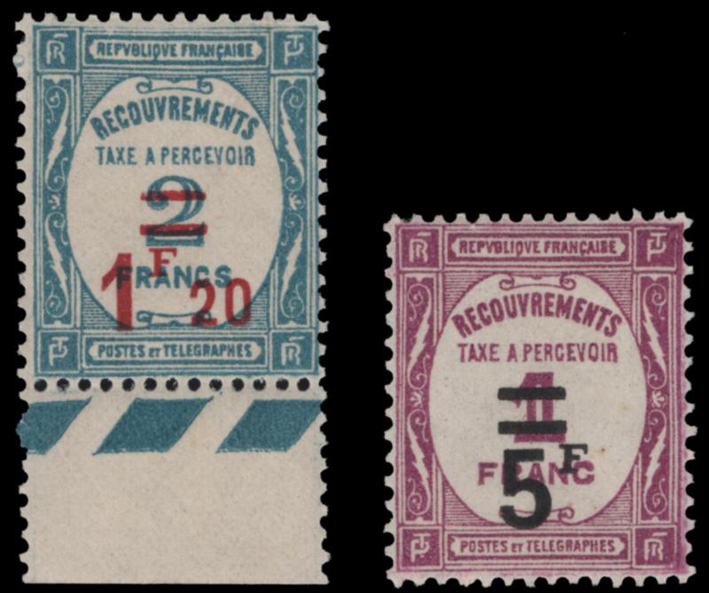 FRANCE, 1929 POSTAGE DUE SURCHARGES NH, #J68-67, fresh, fine-very fine, cat. $245.00, Yvert TT #64-65 @ €345.00 (Image)
