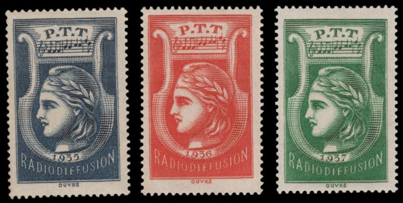 FRANCE, 1935-37 RADIO LICEBSE STAMPS NH, fresh and very fine, scarce, cat. Yvert #1-3 @ €337.00 (Image)