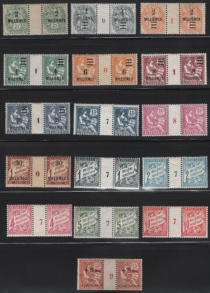 FRANCE, OFFICES IN ALEXANDRIA, MILLÉSIMES GROUP MINT NEVER HINGED, 16 diff. incl. several scarcer ones, fine-very fine, cat. Yvert €1,755.00 (Image)