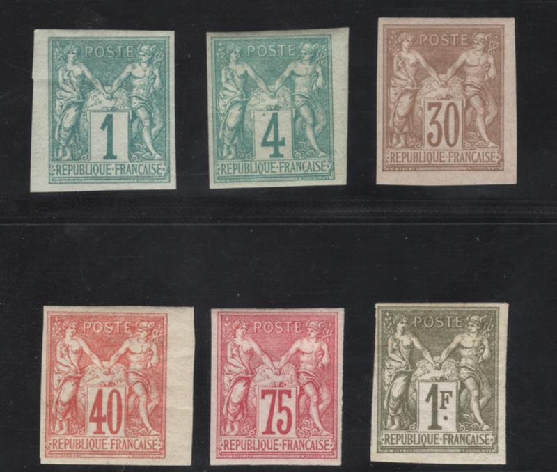 FRENCH COLONIES GENERAL ISSUES, 1877-78, 1c-1fr PEACE & COMMERECE TYPE I IMPERF. MINT, #24-29, fresh, fine-very fine, cat. $281.50, Yvert #24-29 @ €348.00 (Image)