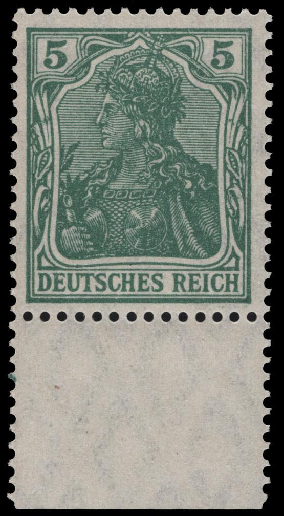 GERMANY, 1915, 5pf BLACKISH GRAY GREEN WAR TIME PRINTING MINT NEVER HINGED, #82 var., perfectly centered, extremely fine/superb, signed Zenker BPP, cat. Michel #85 II d @ €50.00 (Image)