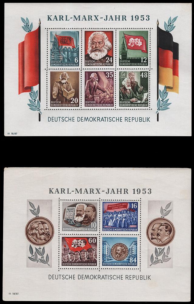 DDR, 1953 KARL MARX SOUVENIR SHEET SET NH, #144a, 146a, perforated, very fine, cat. $240.00 (Image)