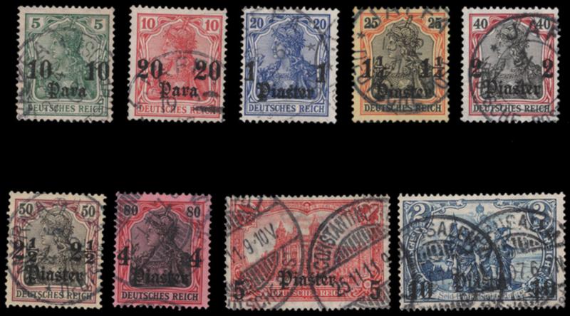 GERMAN OFFICES IN TURKEY, 1906-12, 10pa-10pi SURCHARGES USED, #43-52, fine-very fine, cat. $140.45, Michel #36-45 @ €185.00 (Image)