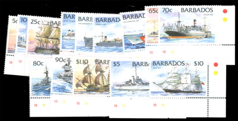 BARBADOS, 1994, SHIPS SET NH, #872-885, corner margins, fresh and very fine, cat. $51.40 (Image)