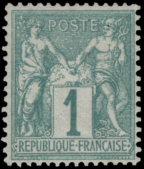 FRANCE, 1876, 1c GREEN TYPE I MINT, #64, attractive, o.g., h.r., fine-very fine, cat. $125.00, Yvert #61 @ €200.00 (Image)