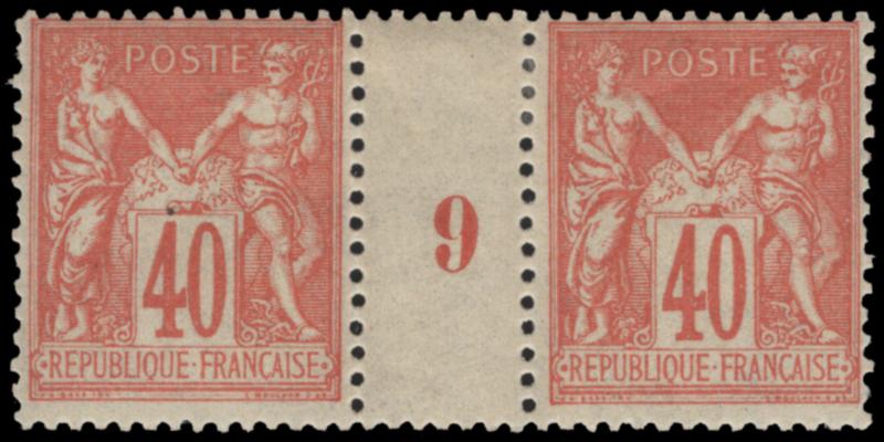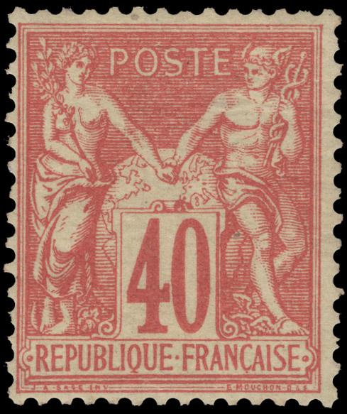 FRANCE, 1880, 40c RED ON STRAW MILLESIMÉS #9 MINT, #95, fresh, small h.r., fine-very fine, cat. Yvert #94 @ €410.00 (Image)