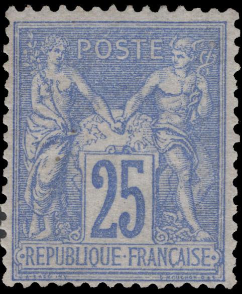FRANCE, 1876, 25c BRIGHT ULTRAMARINE TYPE II MINT, #81 var., fresh, small h.r., fine-very fine, cat. $425.00, Yvert #78c @ €700.00 (Image)