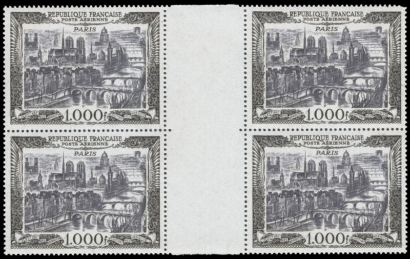 FRANCE, 1950, 1000fr AIR POST GUTTER BLOCK NH, #C27, very fine, cat. $520.00 (Image)