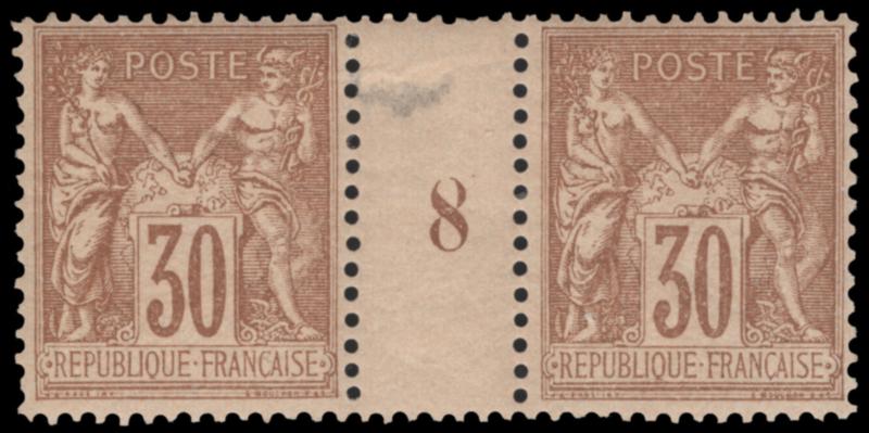 FRANCE, 1876, 30c YELLOW BROWN ON YELLOWISH MILLESIMÉS #8 MINT, #82, fresh, small thin spot, fine-very fine, cat. Yvert #80 @ €340.00 (Image)