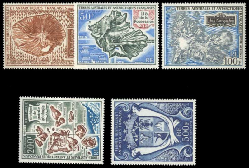 FSAT, 1969-71 MAP AIR POST SET NH, #C19-23, very fine, cat. $215.00, Maury #A20-24 @ €326.00 (Image)