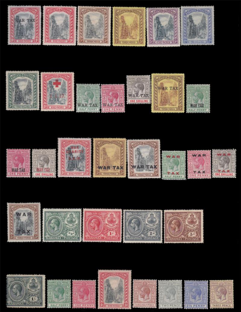 BAHAMAS, 1901-1935, COLLECTION ON BLACK PAGE MINT, better includes nos. 83, 70-83, 85-89, MR4, fresh and fine-very fine, cat. $620.00 (Image)