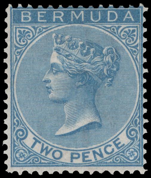 BERMUDA, 1866, 2p BLUE WMK CROWN CC MINT, #2, fresh, o.g., small hinge mark, fine-very fine, cat. $525.00 (Image)