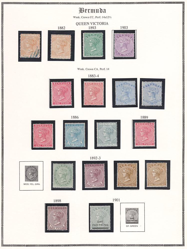 BERMUDA, 1865-1904 VICTORIA ISSUES MINT INCL. THE EXTRA SHADES, incl. e.g. nos. 1*, 7* (also used single), 19a-c*, 20+, LH or h.r., overall fine-very fine, cat. $1.160.00 (Image)