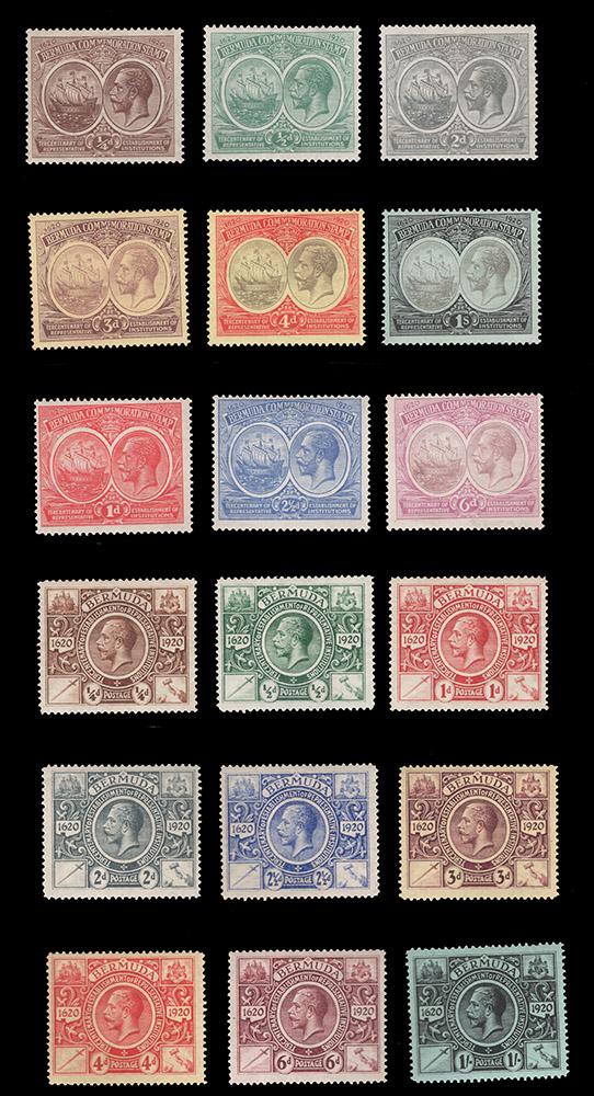 BERMUDA, 1920-21 SEAL OF COLONY & TERCENTENARY SETS MINT, #55-69, 71-79, fresh, LH or h.r., fine-very fine, cat. $264.25 (Image)