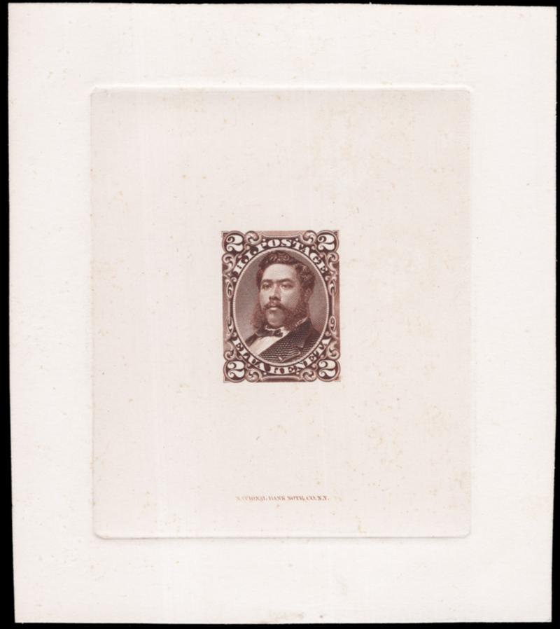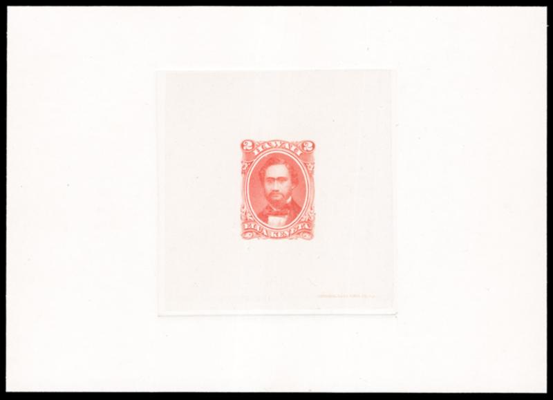 HAWAII, 1875, 2c LARGE DIE PROOF ON INDIA, #35P1, 91 x 103mm card with full die sinkage National Bank Note Co N.Y. imprint within die sinkage, very fine, cat. $750.00 (Image)