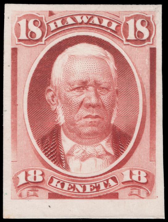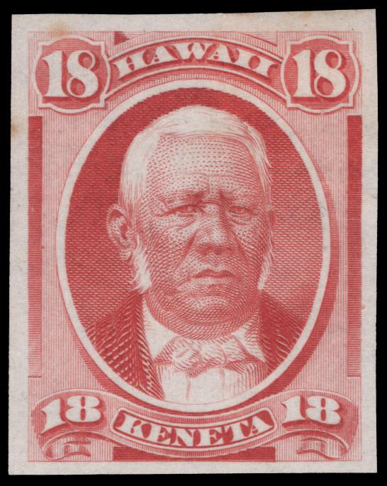 HAWAII, 1871, 18c ORANGE RED TRIAL COLOR PLATE PROOF ON INDIA, #34TC3, rich color, very fine, cat. $650.00 (Image)