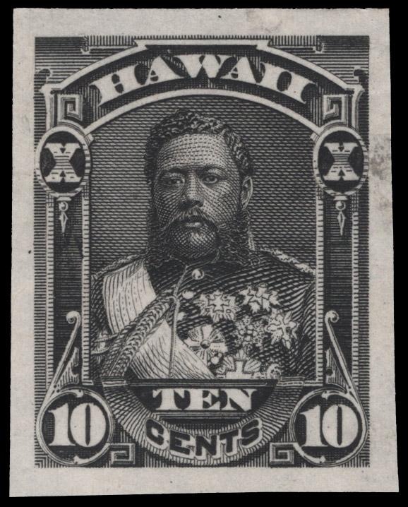 HAWAII, 1882, 10c BLACK PLATE PROOF ON INDIA, #40P3, tiny thin spot in right margin, very fine, cat. $400.00 (Image)