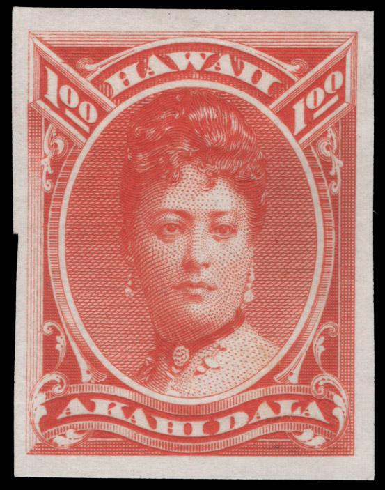 HAWAII, 1883, $1 ROSE RED PLATE PROOF ON INDIA, #49P3, brilliant shade, very fine, cat. $400.00 (Image)