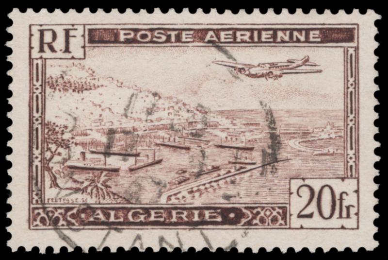ALGERIA, 1946, 20fr AIR POST "F" WITHOUT SERIFS USED, #C4A, very fine, cat. $140.00, Yvert PA #4A @ €155.00 (Image)