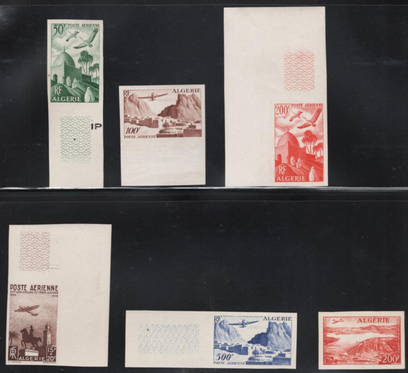 ALGERIA, 1949-57 AIR POST ISSUES IMPERFORATE NH, #C8-11, C12, CB3, fresh, very fine, cat. Yvert PA #9-14 @ €172.00 as hinged (Image)