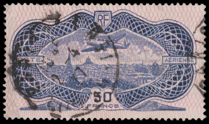 FRANCE, 1936, 50fr BANKNOTE AIR POST USED, #C15, well-centered, ery fine, cat. $310.00, Yvert PA #15 @ €400.00 (Image)